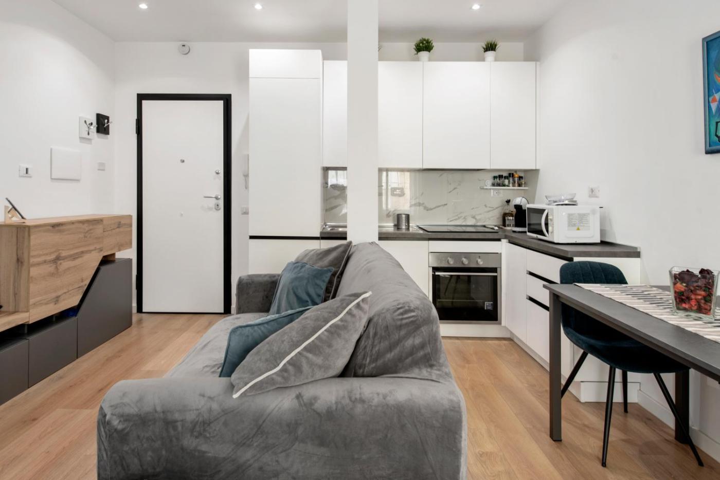 Appartamento con 1 Camera da Letto. This apartment consists of 1 living room, 1 separate bedroom and 1 bathroom with a shower and free toiletries. The well-fitted kitchen features a stovetop, a refrigerator, a dishwasher and kitchenware. This air-conditioned apartment comes with a dining area, a flat-screen TV with streaming services a washing machine and a balcony. The unit offers 2 beds.