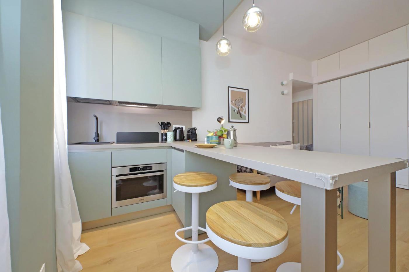 Questo appartamento ha 2 camere da letto, 2 bagni, lenzuola, asciugamani, una TV a schermo piatto, una zona pranzo, una cucina con utensili e un balcone con vista sulla cittĂ .