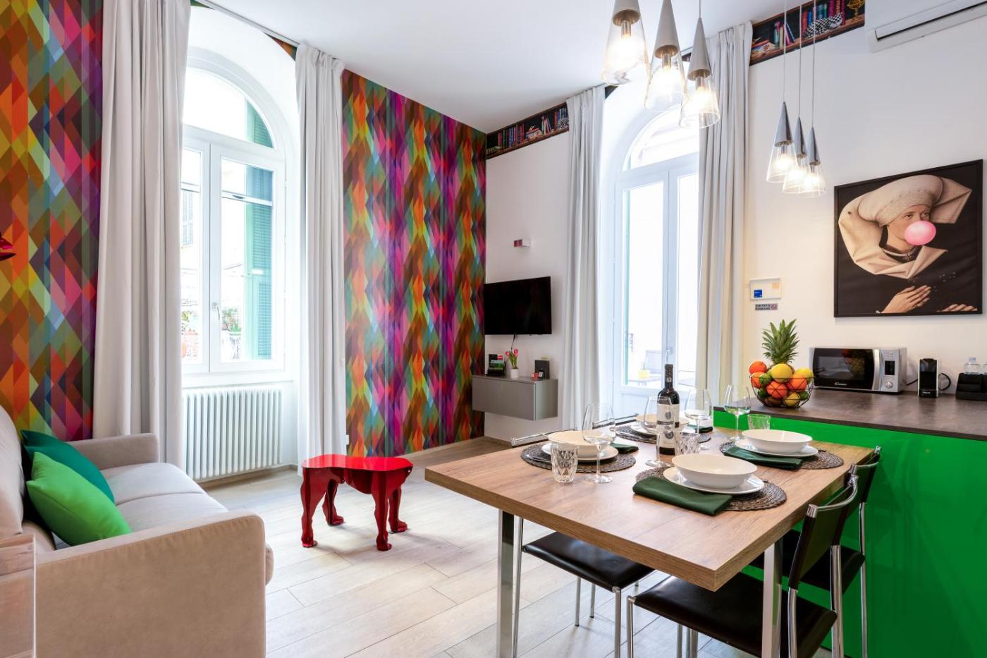 Appartamento. This spacious apartment consists of 1 living room, 1 separate bedroom and 1 bathroom with a shower and a bidet. Meals can be prepared in the kitchen, which is equipped with a stovetop, a refrigerator, a dishwasher and kitchenware. The air-conditioned apartment provides a flat-screen TV with streaming services, a washing machine, soundproof walls, a tea and coffee maker as well as city views. The unit offers 2 beds.