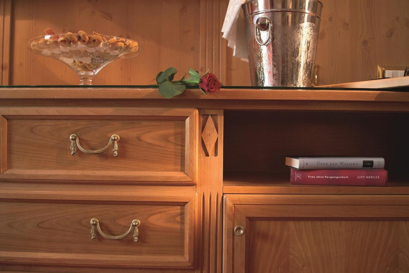 Servita presso il ristorante o sulla terrazza durante l’estate, la colazione comprende bevande calde e vari tipi di tè e salumi, accompagnati da succhi e cornetti appena sfornati, Troverete inoltre salmone, uova, waffle e vino Prosecco. Specializzato nella cucina internazionale e altoatesina, il ristorante è aperto tutto il giorno e propone menù alla carta per pranzo.