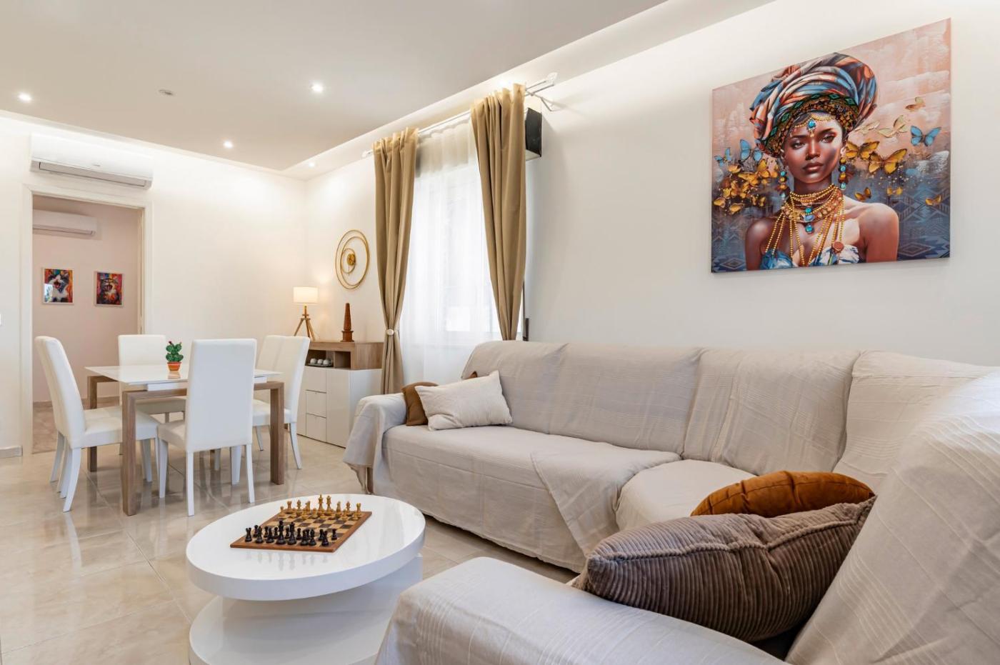 Appartamento con 3 Camere da Letto. This spacious apartment includes a kitchen, a seating area, 3 separate bedrooms and 2 bathrooms with a bath and a shower. In the well-equipped kitchen, guests will find a stovetop, a refrigerator, kitchenware and an oven. The air-conditioned apartment offers a flat-screen TV, a washing machine, a coffee machine, a dining area as well as sea views. The unit has 5 beds.