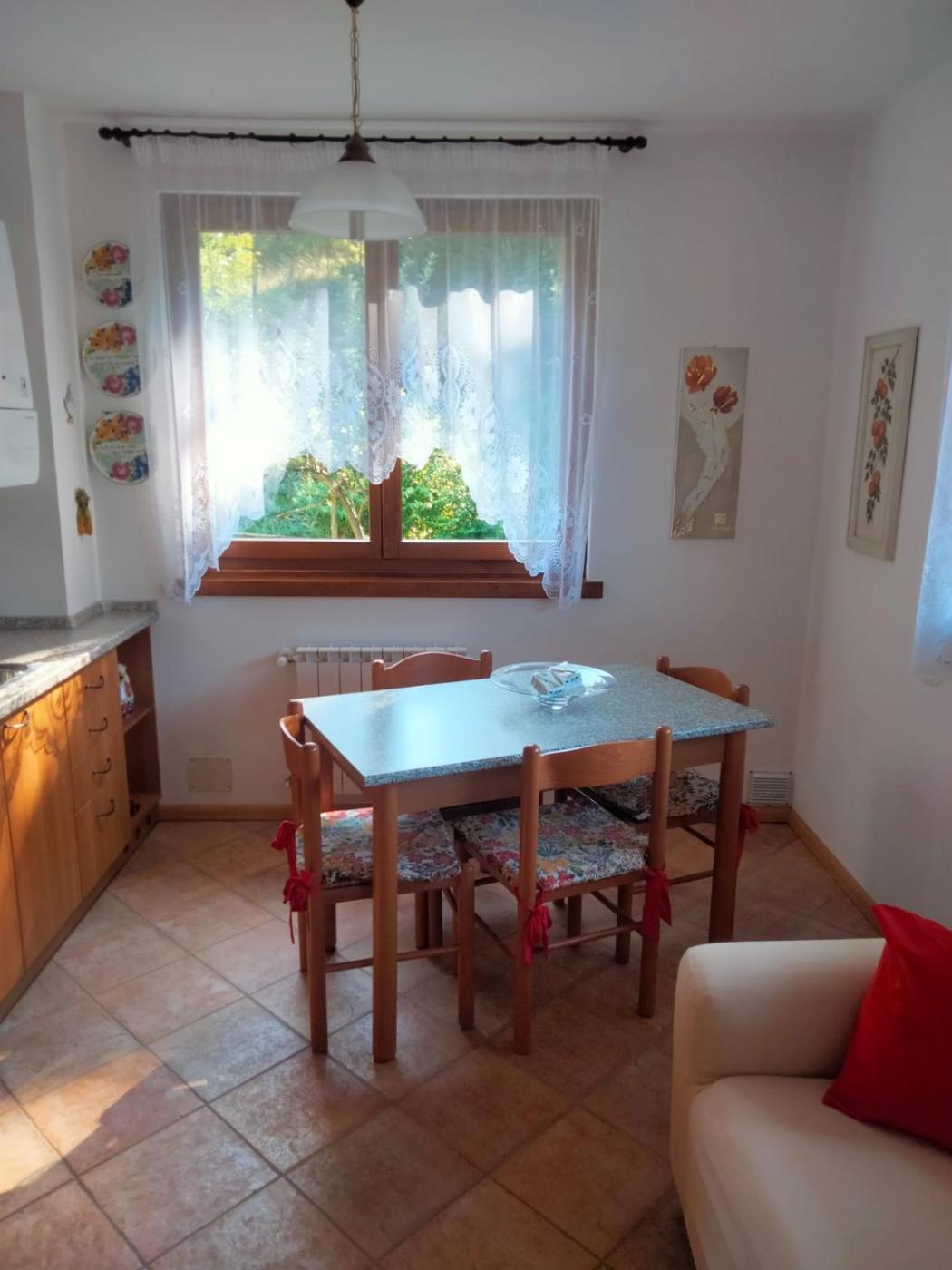 Appartamento con 2 Camere da Letto e con Vista Montagna. Featuring a private entrance, this apartment comprises 1 living room, 2 separate bedrooms and 1 bathroom with a shower and a bidet. Meals can be prepared in the well-fitted kitchen, which comes with a stovetop, a refrigerator, kitchenware and a microwave. The apartment features parquet floors, a seating area with a flat-screen TV, a washing machine, a tea and coffee maker as well as garden views. The unit offers 3 beds.