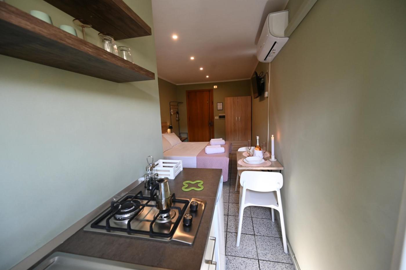 Appartamento Monolocale con 1 Letto Matrimoniale. The air-conditioned apartment features 1 bedroom and 1 bathroom with a walk-in shower and a bidet. Guests can make meals in the kitchen that comes with a stovetop, a refrigerator and kitchenware. The apartment provides a coffee machine, a wardrobe, a tiled floor, heating, as well as a flat-screen TV with satellite channels. The unit offers 1 bed.