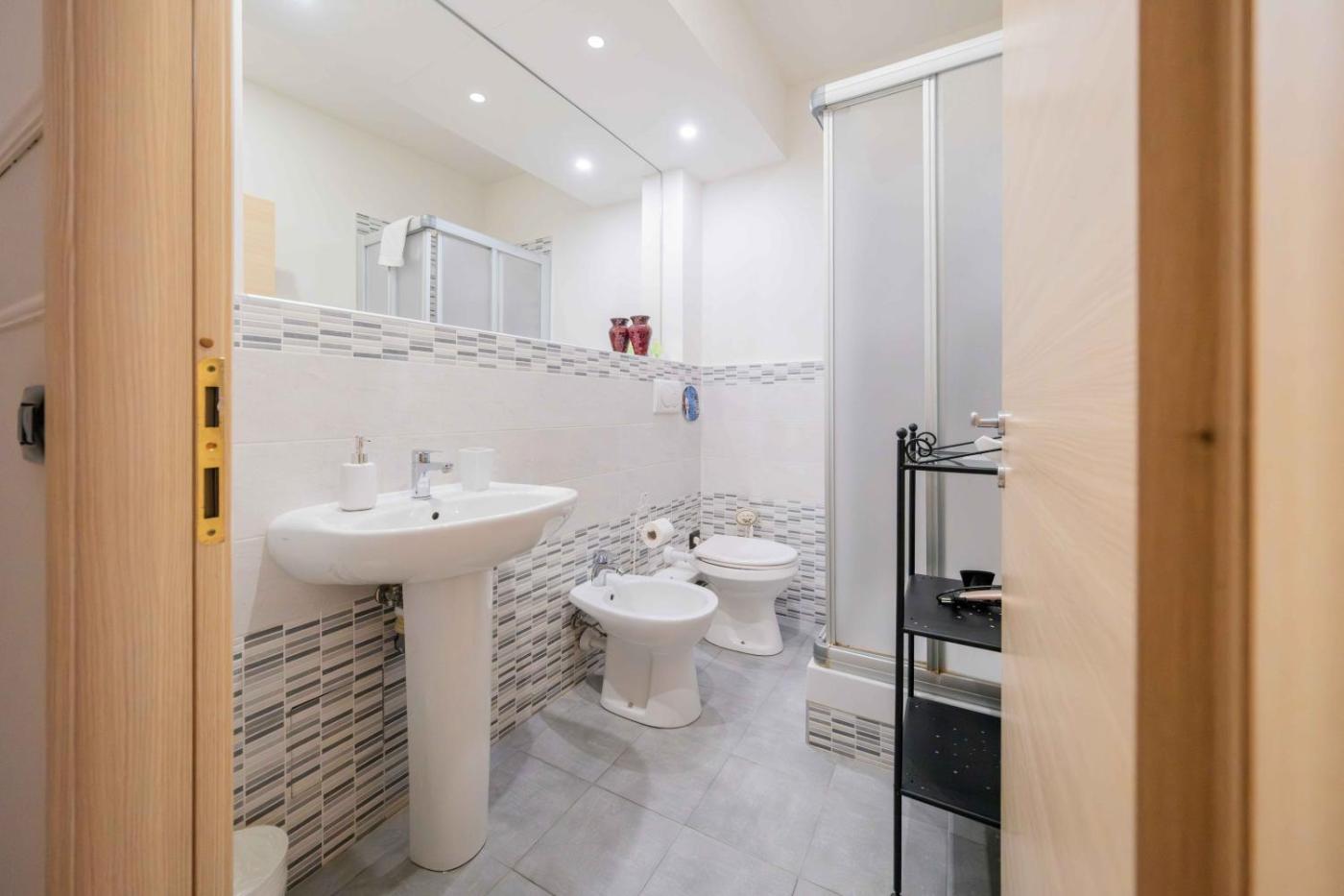 Camera Tripla con Bagno Privato Esterno. Camera climatizzata con WiFi gratuito e TV a schermo piatto. La sistemazione presenta arredi in stile classico, pavimenti piastrellati e un bagno privato esterno. ;