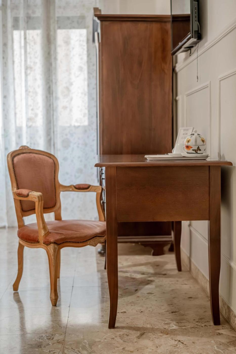 Camera Matrimoniale. Camera climatizzata con bagno interno, WiFi gratuito e TV a schermo piatto. La sistemazione presenta arredi in stile classico e pavimenti piastrellati. ;